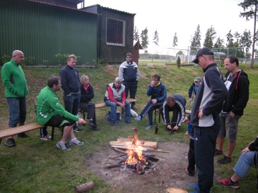 Po posledním fotbalovém utkání této sezóny jsme pokračovali u ohniště. Vyhodnotila se sezóna i individuální výkony, předali se malé upomínky a rozloučili jsme se s trenérem Jirkou Langmajerem. Osobní a pracovní důvody jej dohnali k ukončení slibně rozjeté kariéry trenéra, nezastavil ho ani zájem z SK Slavia PRAHA. Zároveň proběhla ukázka dresů a další výbavy hráčů, pro nadcházející sezónu 2014/2015.